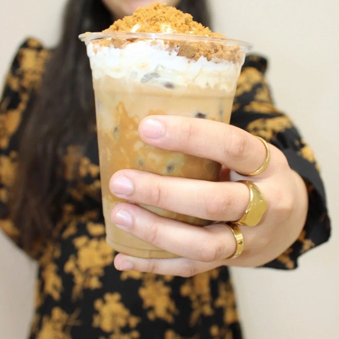 A campfire classic, blended to perfection. Rich chocolate, creamy vanilla, and toasted marshmallow topped with graham crackers.